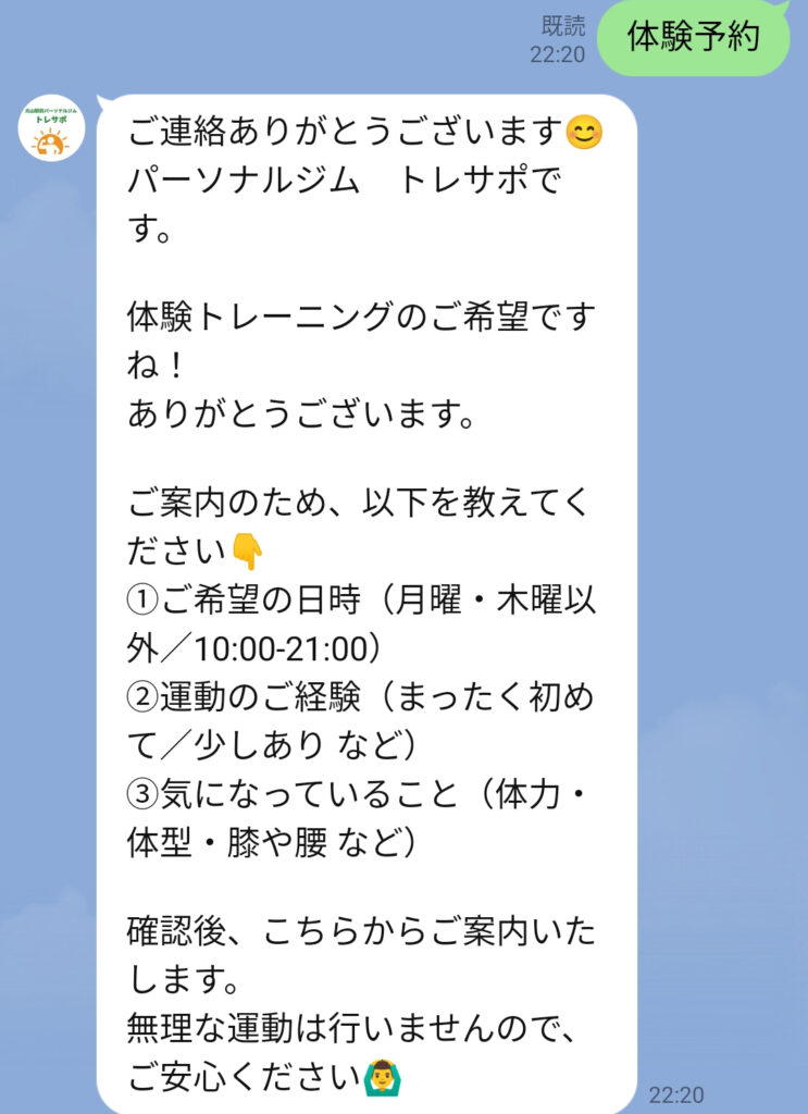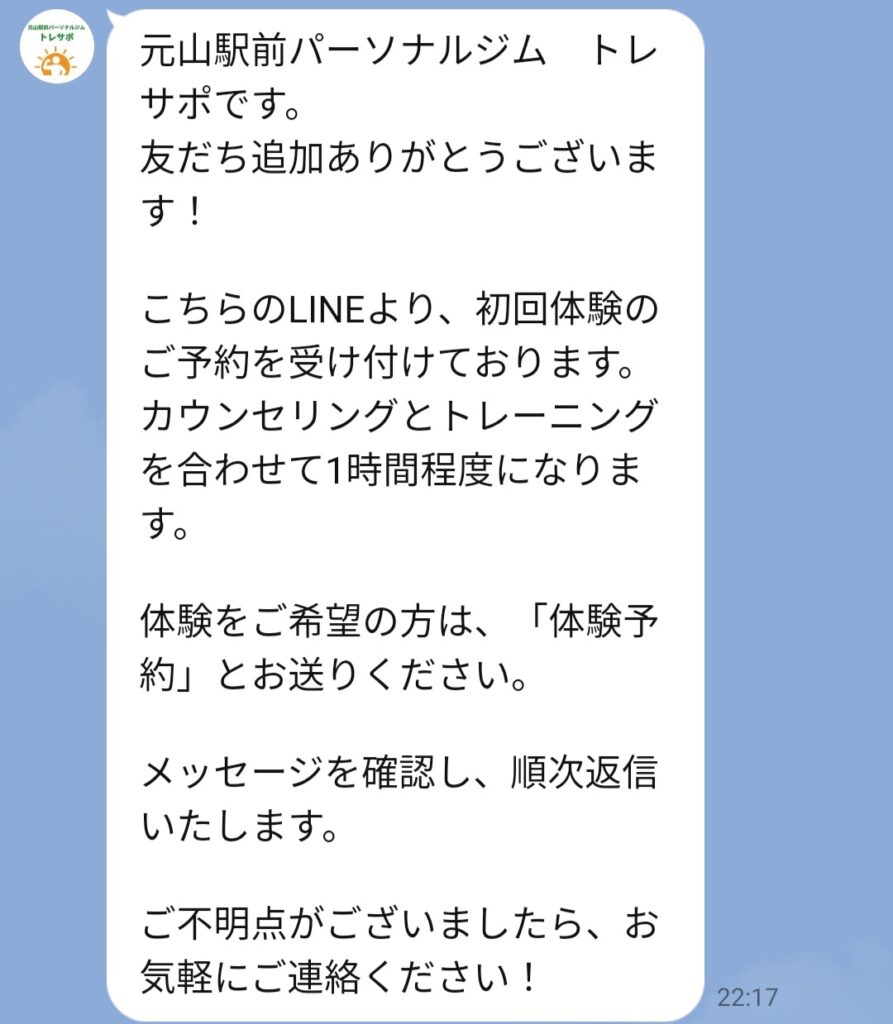 ②公式ラインに、「体験予約」とメッセージを送ってください。